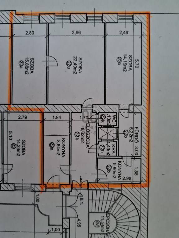 A lakás elosztása: a kisebb lakrész egy konyhából, fürdő-wc-ből és lakószobából áll, a nagyobbik lakrész előszobából, konyhából, fürdő-wc-ből, nappaliból és hálószobából. Az ingatlan világos, tágas terekkel, 305 cm belmagassággal rendelkezik, a konyhabútor és a bojler 4 éves, a fürdőszoba 2 éve felújított, a villanyvezetékek tavaly cserélve lettek, a gázkonvektor szintén új.