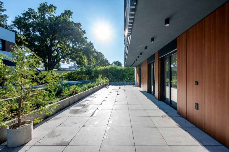 95 m²-es terasz és 110 m²-es saját kert– jacuzzi előkészítés rezgéscsillapítással és elektromos kiállással.