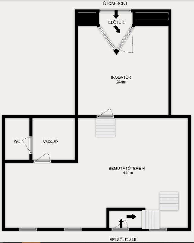 Az ingatlan két nagyobb helységből áll, így elegendő teret biztosít a kreatív munkakörnyezet kialakításához.
