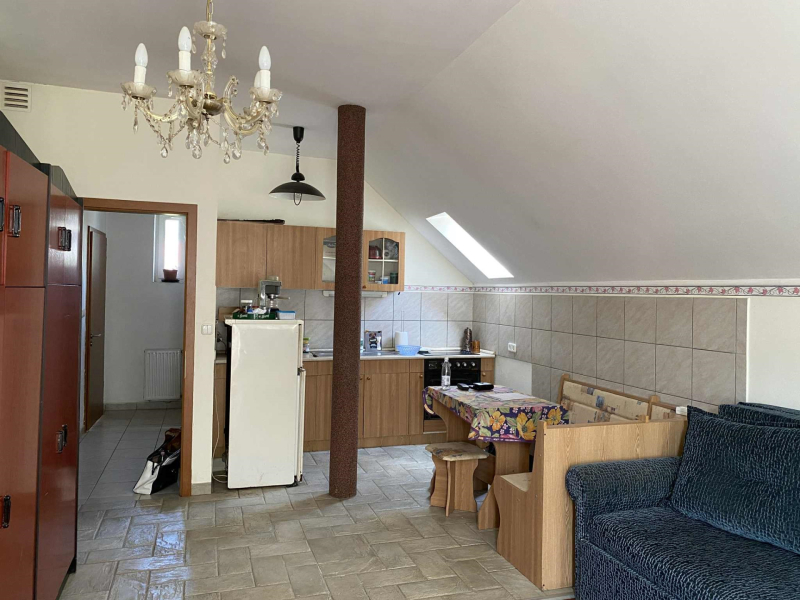 2002-ben teljeskörűen felújított családi ház Pécs, egyik legkedveltebb családiházas övezetében, melyben az alsó szinten üzlethelyiségeket (fogyasztó tér, eladó tér), a tetőtérben két ún. stúdió apartmant építettek (amerikai stílusú konyha és nappali étkezővel).