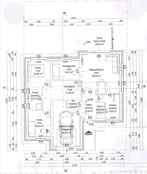 Az épület 1 szintes, nappali + 3 hálószobás,tágas, nagy terasszal tervezve – ideális választás családoknak, akik nyugalomra és igényes otthonra vágynak.