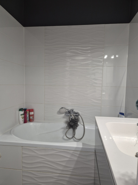 A konyha és a fürdőszoba modern, praktikus kialakítású.