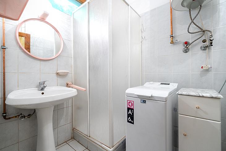 A nappali és a szobák laminált parkettával, míg a vizeshelyiségek járólappal burkoltak.