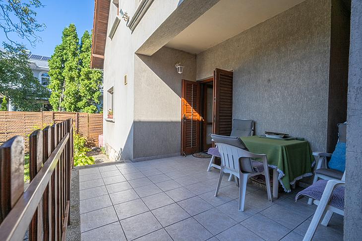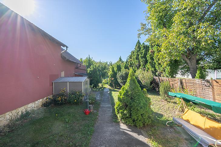 A kellemes méretű kert számos lehetőséget kínál: ideális lehet pihenésre, gyermekeknek játszótér kialakítására vagy akár egy teraszos kerti kiülő megvalósítására is