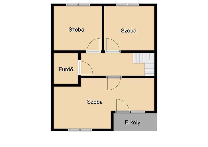 A földszinten egy kényelmes méretű nappali, étkező, egy világos konyha, fürdőszoba és külön wc található. Az emeleten további három tágas szoba található és egy kádas fürdőszoba.
