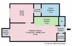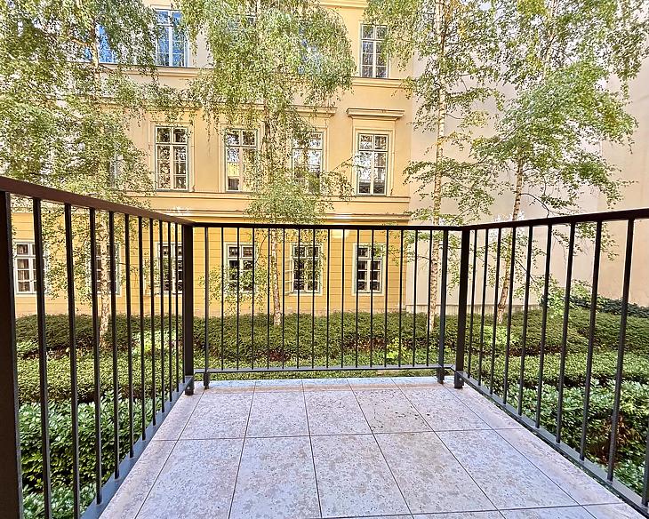 A 63 négyzetméteres, két szobás lakás tágas és világos terekkel várja új lakóját. Az amerikai konyhás nappali közvetlen kapcsolattal nyílik az erkélyre, amely a csendes belső udvar felé tekint. A szomszédos irodaházak délután négy óra után kiürülnek, így az otthon különösen bensőséges, zavartalan hangulatot nyer.