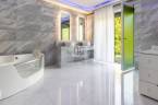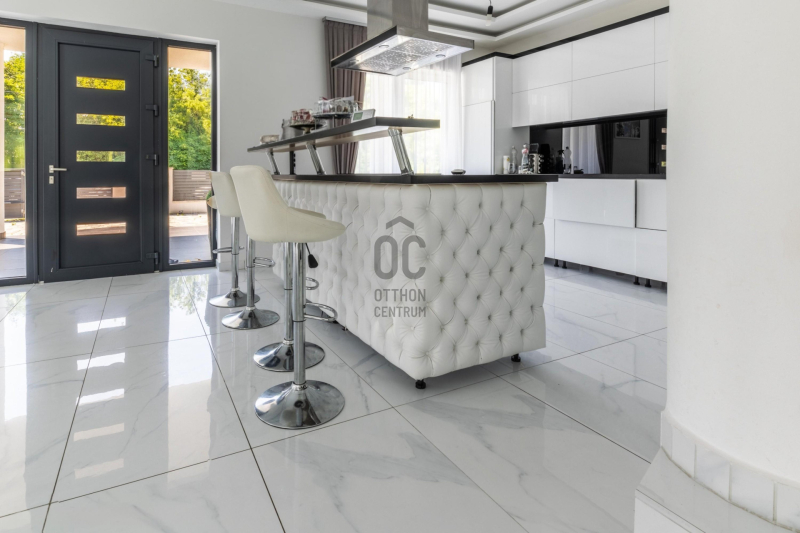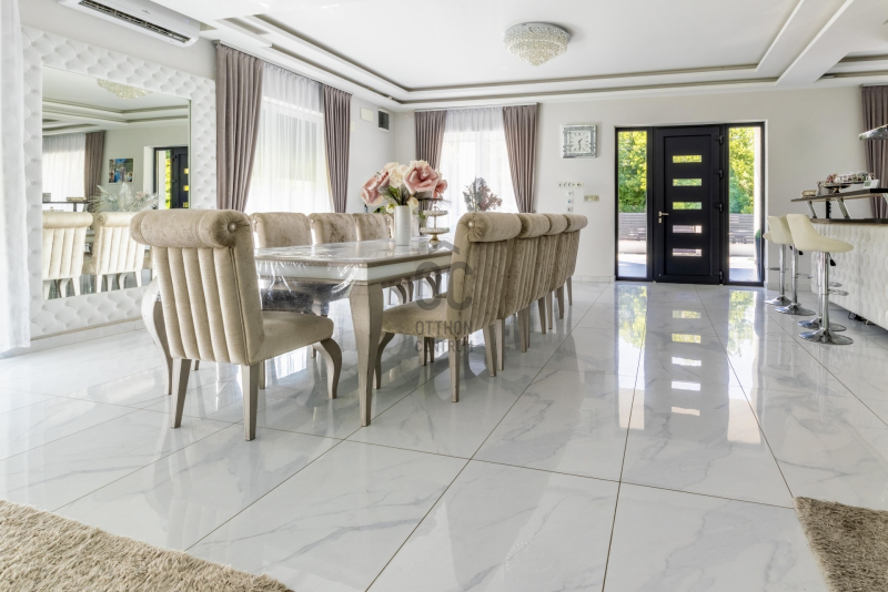 - A hatalmas nappalit és az emeletre vezető impozáns lépcsőt Carrarai márvánnyal burkolták, ami egyedi stílust kölcsönöz a belső térnek.