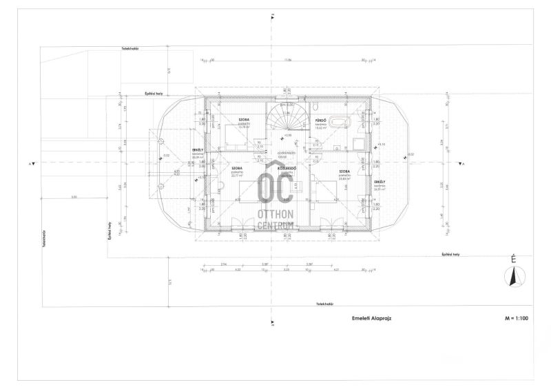 - Az emelet felosztása: közös nappali, 3 erkélyes szoba, közlekedő, fürdőszoba wc-vel.