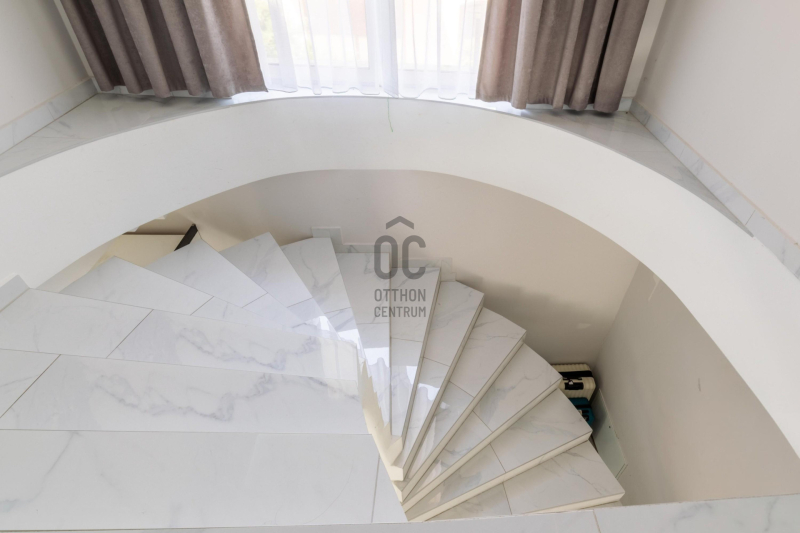 - A két szintes lakóház 2022-ben épült egy parkosított, 823 m2-es telken.