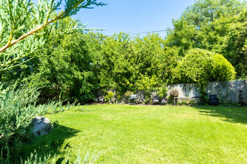 - A kert szépen gondozott, automata öntözővel, hátsó intim kertjében grillező lett kialakítva.