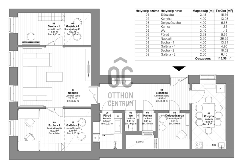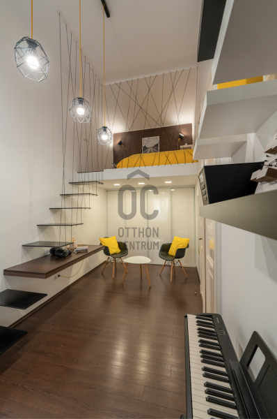 •Első emeleti, 113 m² hasznos alapterület (98 m² + állógaléria), ami tényleg levegőt ad.
