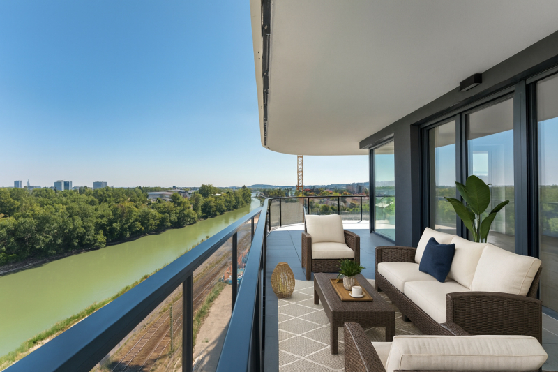 Ez a lakás nem egyszerűen egy otthon, hanem egy életérzés: reggeli kávé a Dunára néző teraszon, esti naplemente a város fényeivel, és a nyugalom, amit csak a víz és a zöld közelsége adhat.