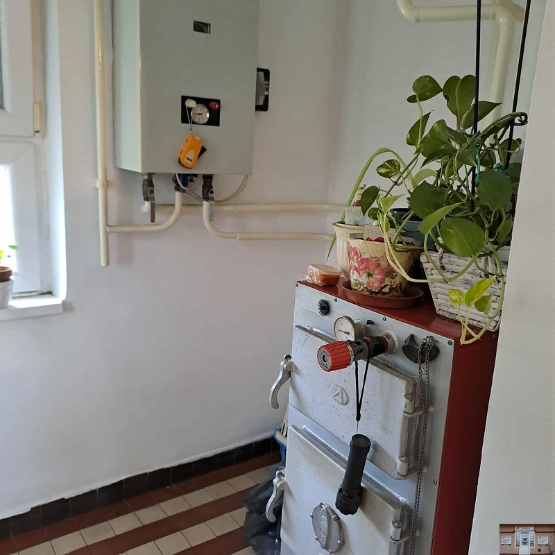 Ingatlan összközműves, saját mérőórákkal rendelkezik. Fűtése gáz cirkóval vagy vegyes tüzelésű kazánnal is működtethető, mely az előtérben található, a meleg vizet villanybojler biztosítja.
