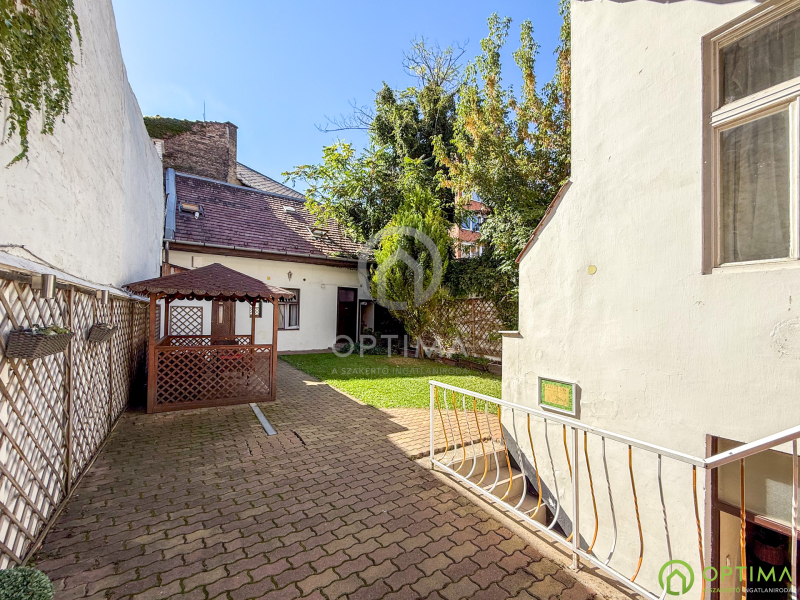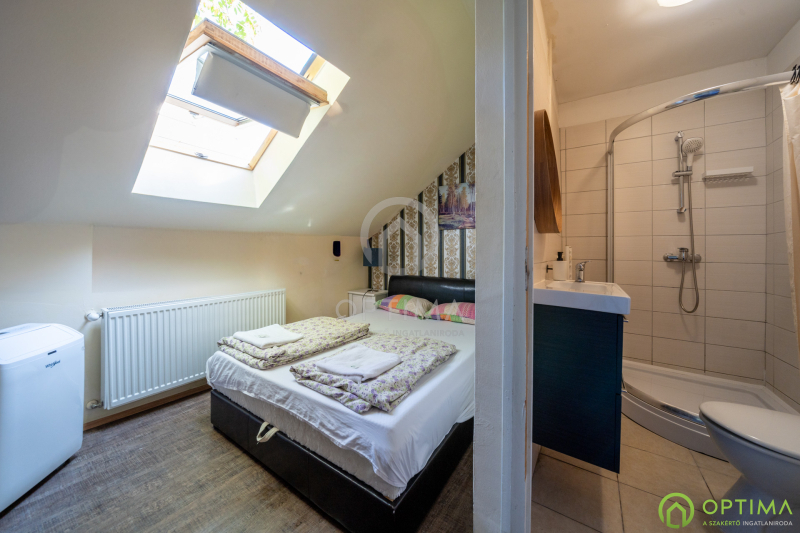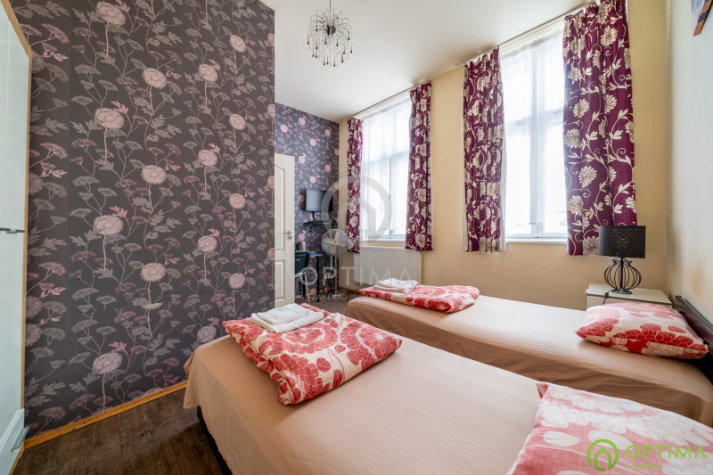 District VIII, Koszorú Street | gross 236 m² | 300 m² plot | 2 separate buildings | 10 units plus reception, dining area, kitchen and laundry | convertible attic 30 m² | capacity 22 guests