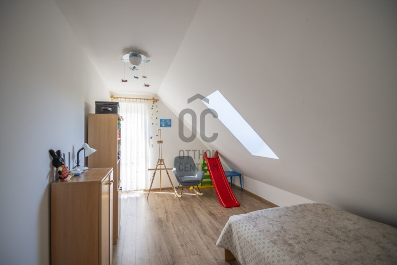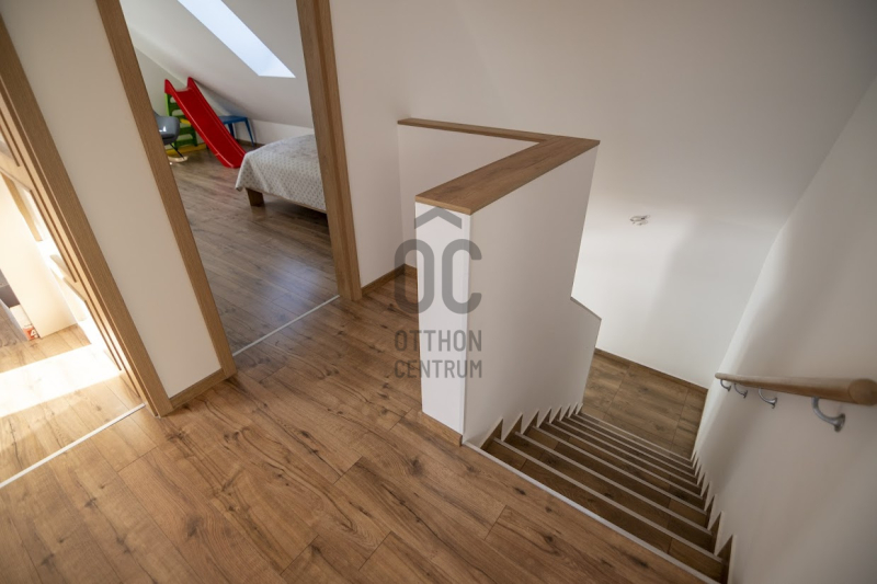 Budafok kedvelt részén, családi házas környéken, új építésű ingatlanok szomszédságában eladó egy 2023-ban épült, nettó 150 m2-es (bruttó 180 m2-es), nappali + 4 szobás ikerház-fél.