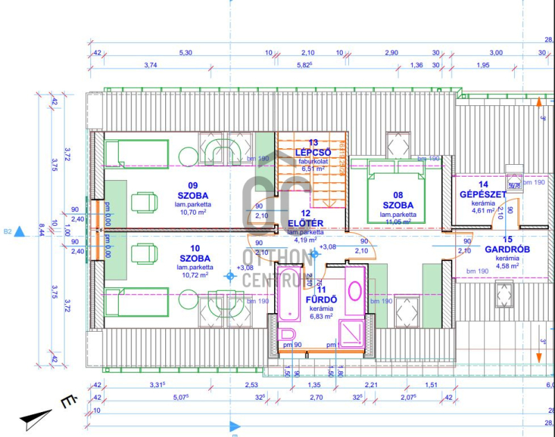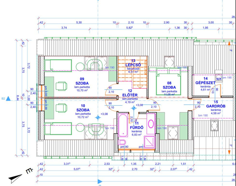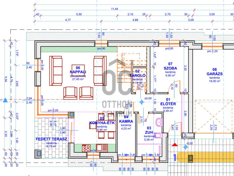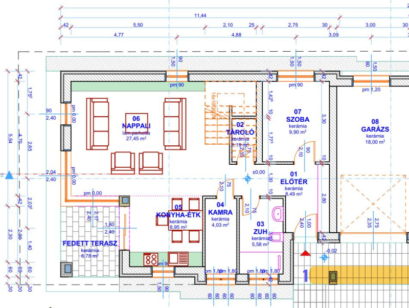 - nappali (27 m2), kertkapcsolatos terasszal (7 m2)