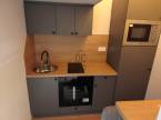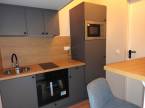 A zárt előtérből nyíló mini lakásban komplett gépesített és felszerelt konyha étkezőpulttal, nappali tér, épített zuhanykabinos fürdőszoba, valamint a galérián egy dupla ágy kap helyet.