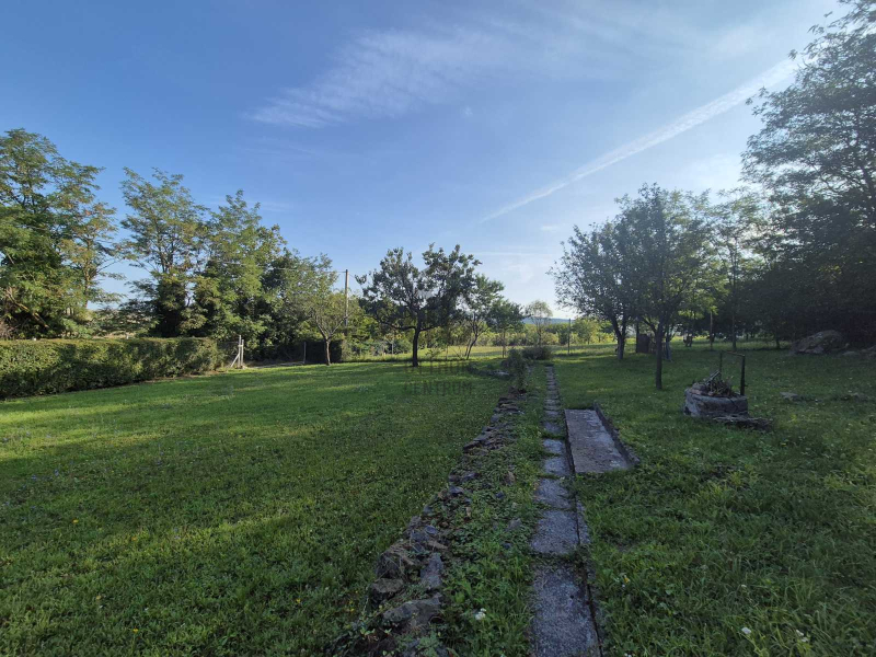 A területen található egy kb. 1980-as években téglából épült ikerház, amely 2 szintes + boros pincés. A ház lakható hasznos összterülete cca. 60 nm. A ház közvetlen környezete egy kb. 1000 nm füvesített, sziklakertes gondozott, füvesített, parkosított terület, teraszos bazalt fallal a kertben, melyen található egy különálló garázs is.