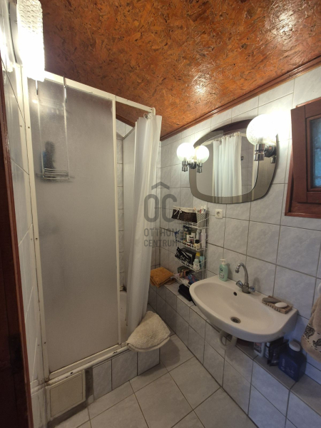 Közmű: villany, ( 25 A), vezetékes víz is bekötve a házba. Az alsó szinten található egy kertkapcsolatos, tágas látványablakos előtér. Szinte belátni az egész kertet. Innen közvetlen a kert hátuljára tudunk kilépni, ahol a garázs van, és itt már a saját erdőbe tudunk felmenni. Ezt az előteret akár télikertnek is használhatjuk. Továbbá a házban van még egy kerámia burkolatos nappali-konyha, egy zuhanyzós fürdőszoba mellékhelyiséggel. A fűtés kandallóval megoldott. ( boylerről megy a melegvíz).