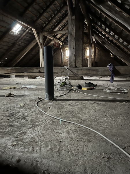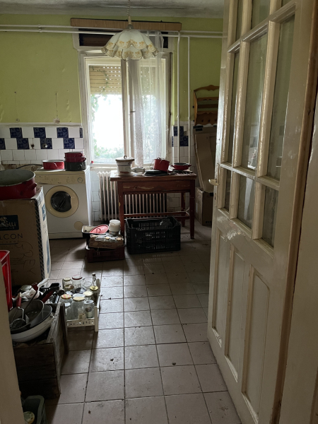 A második épület: 156nm nagyságú, melyben előszoba, nappali, konyha , fürdőszoba és 4 szoba található. Minden közmű bevezetve, illetve egy cserépkályha is alkalmas a fűtésre. Az épületet régóta nem lakják, ezért felújításra szorul. Félig alápincézett. Tetőszerkezete jó állapotú,betonfödémes és nagy belmagasságú padlástérrel rendelkezik.