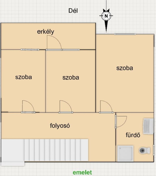 - Az emeleten 3 szoba, erkély és egy fürdőszoba, a padlástérben még egy további szoba és egy illemhelyiség került kialakításra.