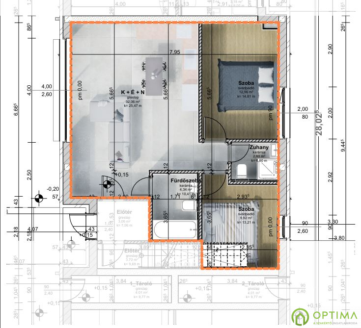 A két HÁLÓSZOBA nyugodt, privát szférát biztosít, míg a két FÜRDŐSZOBA (egy KÁDAS és egy ZUHANYZÓS) a maximális kényelmet szolgálja.