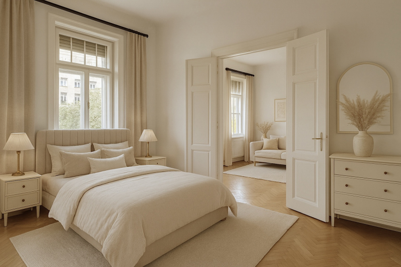 Nagyvonalú terek, igazi polgári életérzés. Az eredeti parketta, a hatalmas kétszárnyú ajtók és a kor hangulata magával ragadja azokat, akik szeretik a klasszikus eleganciát. Egy otthon, amelyben minden részlet a múlt értékeit idézi – azoknak ajánlom, akiknek fontos a stílus és a karakter.