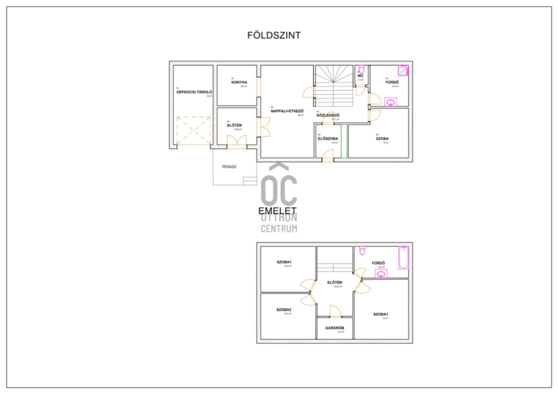 Lakótér: 135 m² (földszint + tetőtér)