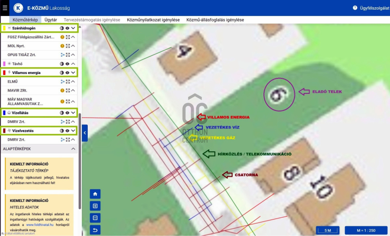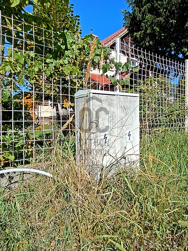 - Villany (3 fázis, 2 mérőórának helyet adó dobozzal): a telekhatáron belül
