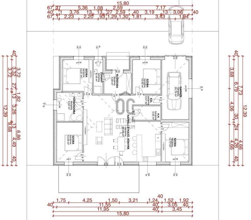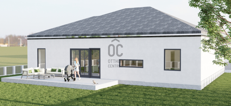 164 nm hasznos alapterületű földszíntes, amerikai konyhás nappali, 4 hálós, 2 fürdőszoba-wc, háztartási helyiség, terasz és saját 660m2 kert!