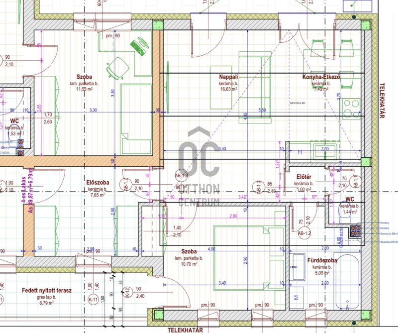 5. lakás: 66,72 m² + 12,35 nm terasz