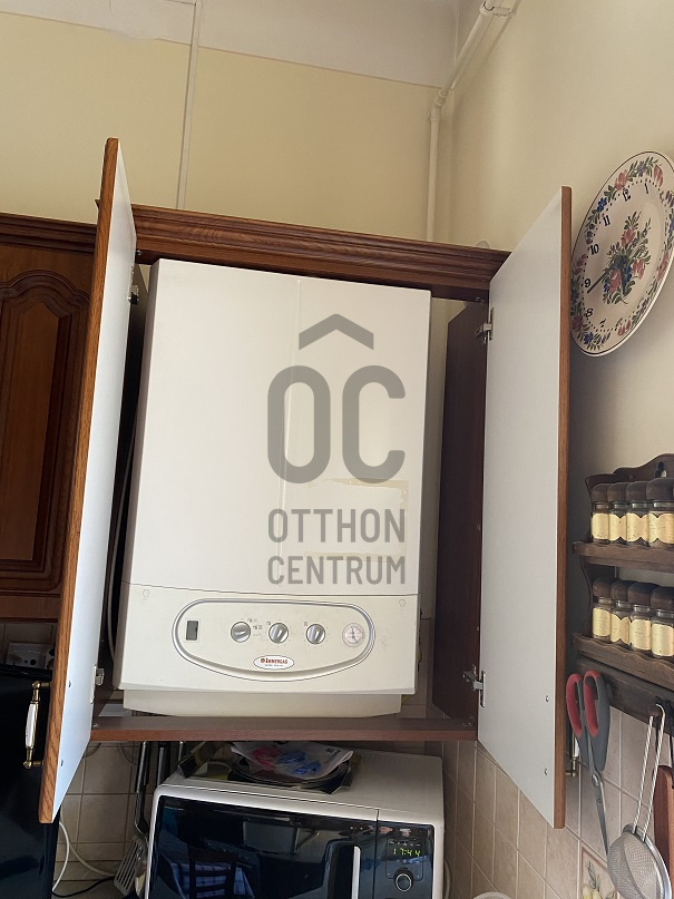 Fűtésről gáz cirkó kazán gondoskodik, radiátoros hőleadók segítségével, alternatív fűtésként működik egy szép cserépkályha, mely vizteres kialakításának köszönhetően képes az egész lakást is fűteni.