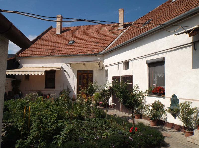 Az udvaron két garázs épült, valamint egy részén konyhakert került kialakításra, az egész osztatlan közös terület 454 nm.