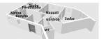 A lakás az udvar belső részéről nyílik, mely két szobából, tágas nappaliból, konyhából, fürdőszobából, WC-ből, gardrób szobából és közlekedőből áll.