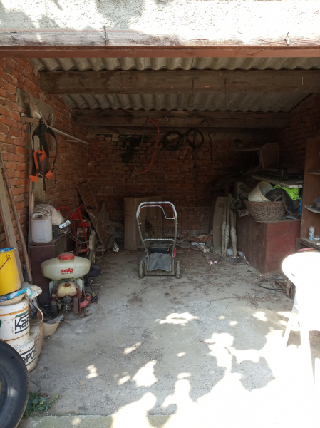 Az udvar szépen parkosított, gondozott. Hátsó részén egy téglaépítésű garázs található, amely 18 m2 nagyságú.