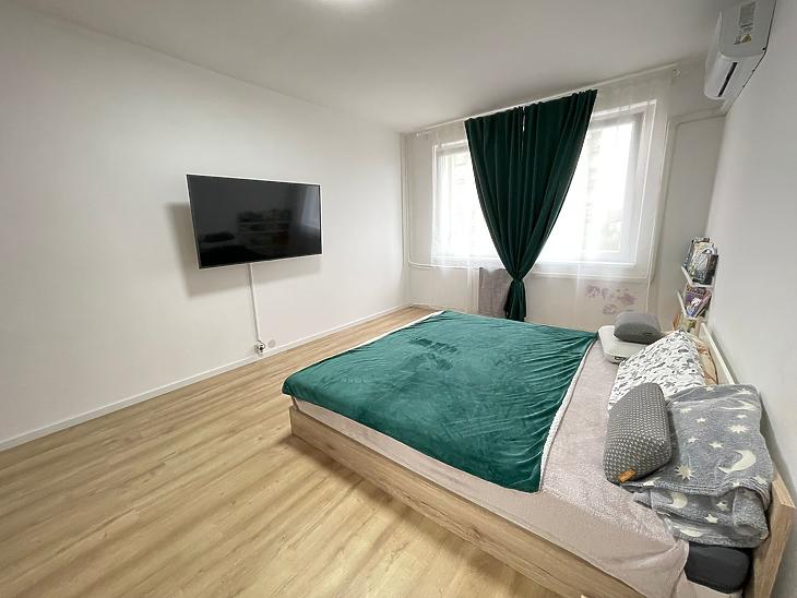 Káposztásmegyer I.-en a Kordován téren, liftes társasház IV. emeletén, keleti fekvésű, 58nm-es 2szoba+hallos, kamerával felszerelt lakás eladó, 4NM-es ERKÉLLYEL. Az ingatlan felújított állapotú, 2024.-ben teljeskörű felújításokon esett át. A víz-villany vezetékeket áthúzták, a nyílászárók műanyag thermo üvegesek, redőnyösek, szúnyoghálósok. Minden helyiség cseppálló parkettával burkolt, a konyhabútort modernizálták, gépesítették (kerámia főzőlap, mosogatógép, sütő). A fürdőszoba és a wc új burkolatot kapott, Wellis mosdókagylót, kádat és szekrényt szereltek be, a csaptelep pedig Hansgrohe márkájú. A belső ajtókat Lengyelországban gyártották, Legrand kapcsolókat és konnektorokat szereltek fel. A beépített bútorzat, a fürdőszoba szárító és a hálószobában levő ruhás szekrény, a vételár részét képezik. A lakáshoz tartozik egy közös, 40nm-es tároló is. A környék csendes, ellátottsága kiváló, a közelben bevásárlási lehetőségek (pl: SPAR-50 m), gyógyszertár, orvosi rendelő és bankfiók 1 percre, posta, illetve több iskola és óvoda 5-10perc séta távolság.