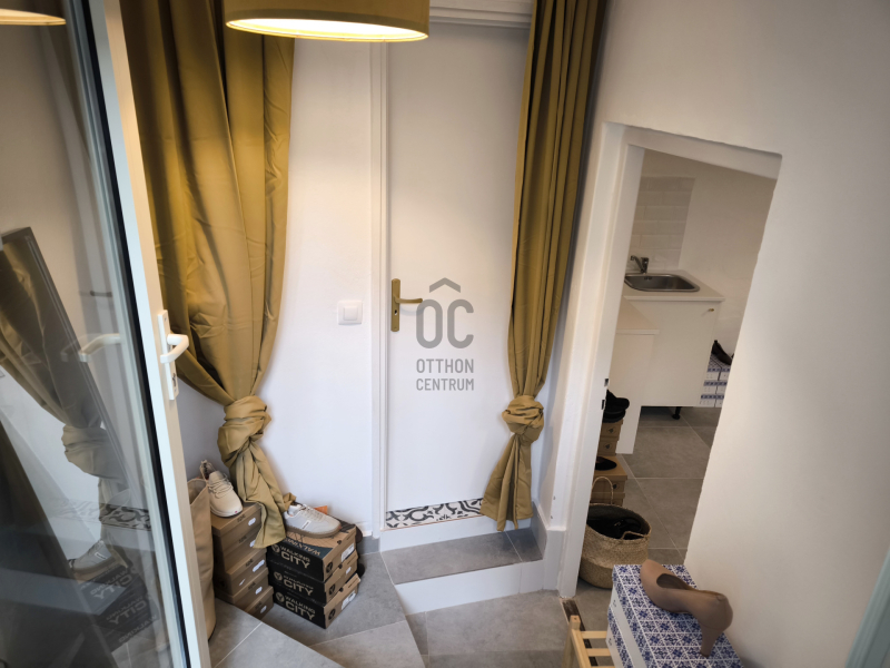 A felújítás során a víz- és villanyvezetékek teljes cseréje megtörtént, a fűtésről korszerű, újonnan beépített infrapanelek gondoskodnak. A helyiség igényesen burkolt, az utcáról hidegburkolatú lépcső vezet le az előtérbe, ahonnan egy mellékhelyiség, illetve a tágas, 25 nm-es fő helyiség nyílik. Utóbbiban egy beépített konyhapult is helyet kapott, indukciós főzőlappal felszerelve.