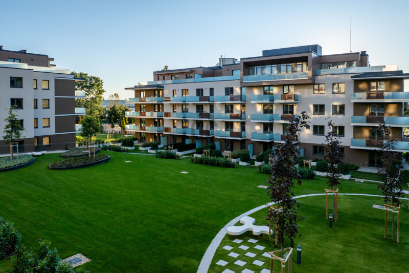 A házak 4 szintesek, egymástól kellő távolságban találhatók, épületenként 50 lakással. A beruházó ügyelt arra, hogy megtartsa a szellős épület elhelyezési struktúrát, kibővített családi szolgáltatásokkal és a legújabb trendeknek megfelelő építészeti megoldásokkal alakította a lakóparkot.