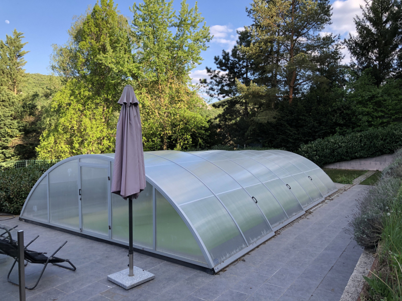 -Medence - 6x4 m - mobil polikarbonát fedéssel + gépészet (felújítandó)