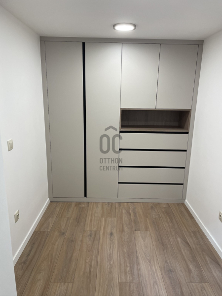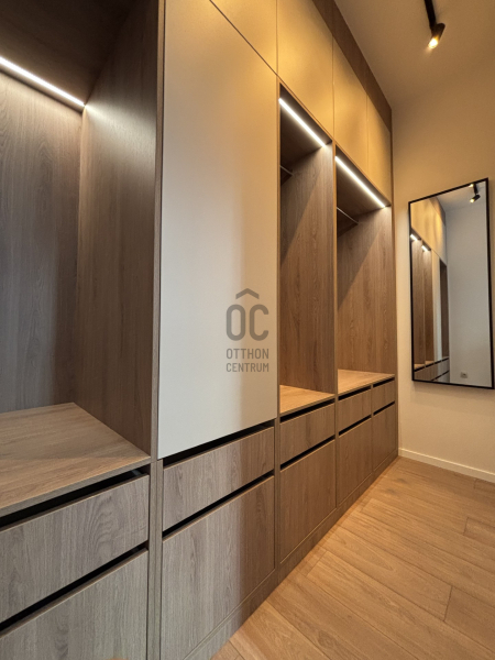 A nagyobbik hálószobához tartozik egy saját gardrób rész, beépített bútorral.