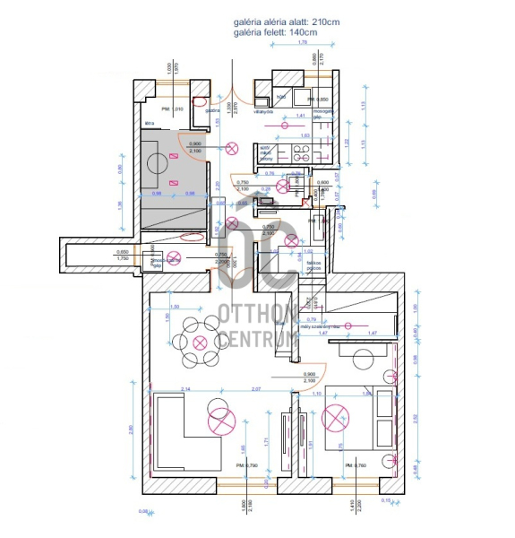 A kisebbik szobába kialakításra került egy 6m2-es fekvő galéria ( belmagasság - 150 cm ).