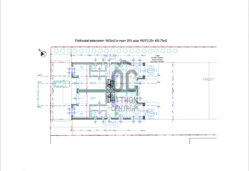 Felső szint:3 szoba, háztartási helység, gardrób ,fürdő-wc