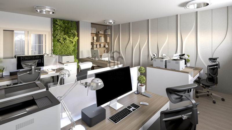 - 330 cm-es belmagasságának köszönhetően tágas, reprezentatív tereket kínál, amely ideális ügyfélfogadásra vagy csapatmunkára.