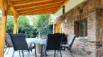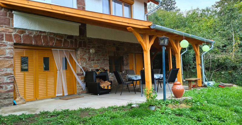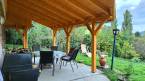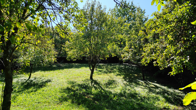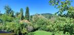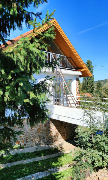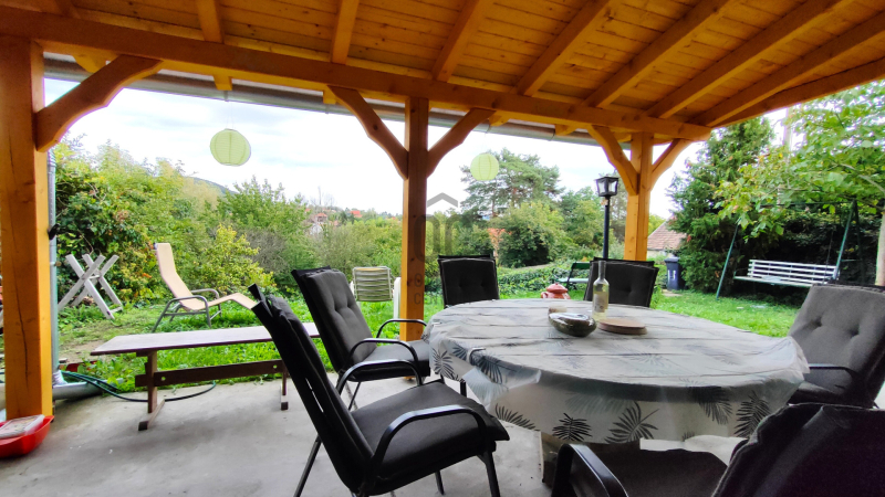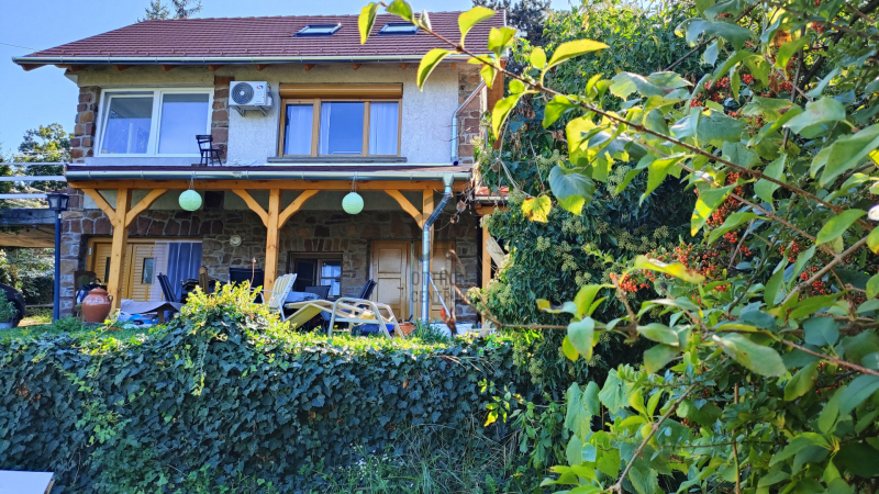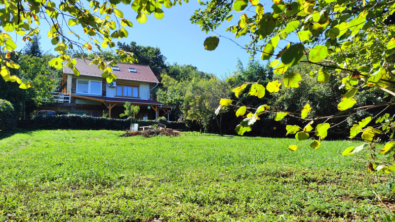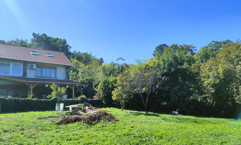 A teraszos kialakítású telek épület alatti füves része fákkal és bokrokkal határolt, az alatta elterülő fás, ligetes területrész igazi pihenőparadicsomot kínál.