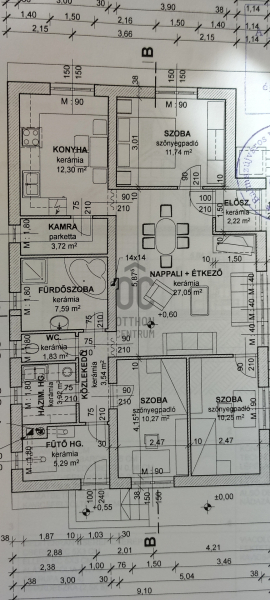 - tágas nappali, 3 hálószoba, konyha kamrával, fürdőszoba, külön Wc, háztartási helység és kazánház