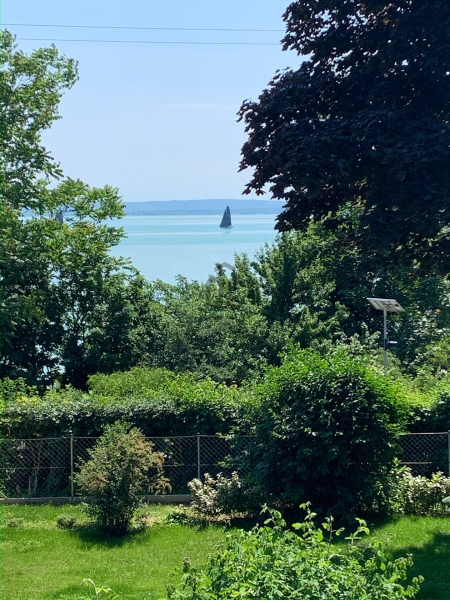 A felső emelet egy dolgozósarokból, egy nappali és hálószoba részből áll, amelyhez külön gardrób és fürdőszoba+wc csatlakozik. Ez a szint is Balatonra néző panorámával nyújt csodaszép látványt az év minden szakában.