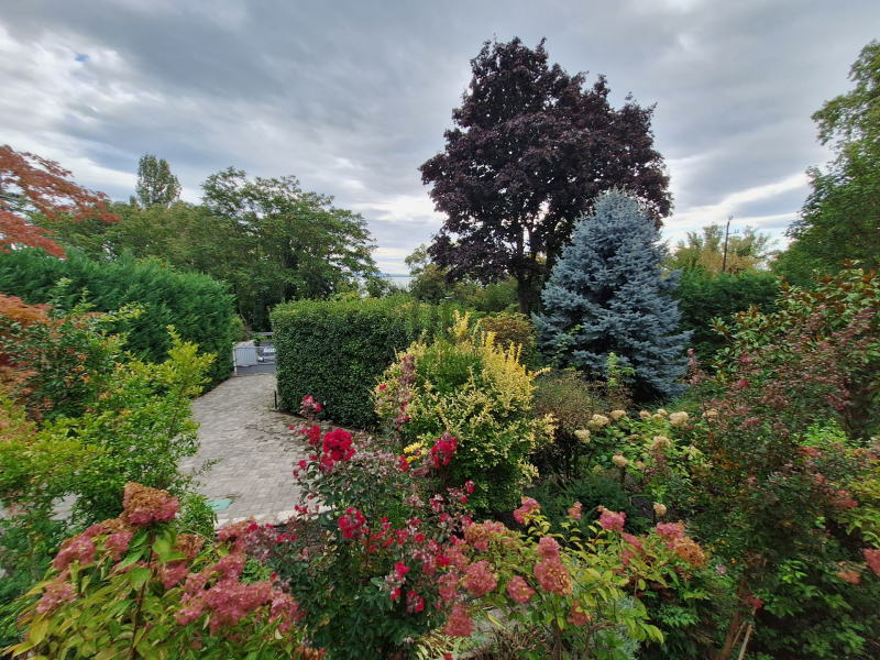A télen-nyáron zöldellő kertben fúrt kút és locsolórendszer van kiépítve. A ház bejáratain és ablakain szúnyoghálók, elektromos redőnyök, sötétítők, a terasz és tetőtér ablakai felett napellenzők vannak. Az épület riasztórendszerrel felszerelt. A 71-es főútról nyílik az elektromos kapu. A kert több mint 100 féle növénnyel beültetett, a mediterrán növények, a ritka fák, a veteményes- és a fűszerkert gondosan ápolt és kertészekkel karbantartott.