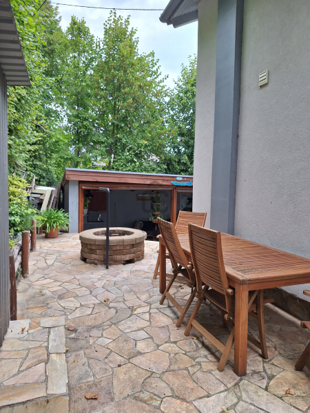 A ház mellett egy teljesen felszerelt, gépesített nyári konyha, egy kerti zuhanyzó, bográcsozó-grillező és egy tároló kamra helyezkedik el.
