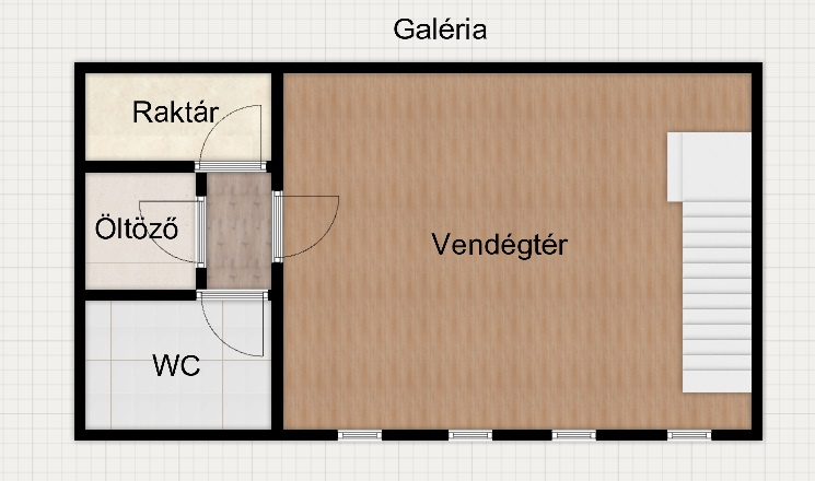 Az ingatlan alapterülete 42 m², amelyhez tartozik egy galériás szint, ahol raktár, 2 külön mosdó és öltöző is kialakításra került.