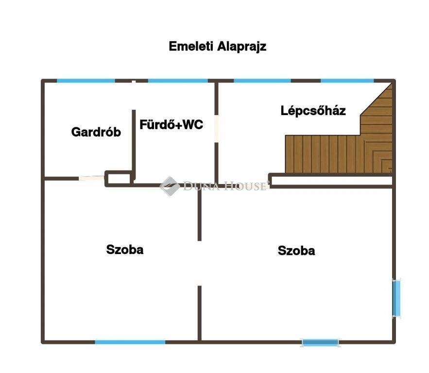 Az emeleten 2 hatalmas szoba, egy zuhanyzós fürdő wc-vel és egy gardrób vár minket. A szobában megtartották a cserépkályhát, melyet szépen karbantartottak az elmúlt évtizedben.